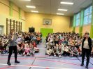 Nie zabrakło poezji śpiewanej w wykonaniu Dominiki, uczennicy klasy 5. W pierwszej części uczniowie klas 1-3 przenieśli nas do zaczarowanego świata literatury dziecięcej. Następnie na scenie pojawił się Korowód Postaci Literackich. Wszyscy mogliśmy podziwiać przepiękne stroje, przebrania przedstawicieli wszystkich klas. W następnym punkcie naszego programu uczestniczyliśmy w rozprawie sądowej, a na ławie oskarżonych zasiadła - książka. Po przedstawieniu wielu dowodów i zeznań świadków stwierdzono, że nie może ona zniknąć z naszego życia. Na zakończenie rozruszaliśmy naszą widownię, która kibicowała drużynom biorącym udział w ,,potyczkach literackich". Nauczyciele nie spodziewali się, że to oni staną przeciwko drużynie uczniów. Rywalizacja była zacięta, obie drużyny wykazały się dobrą znajomością literatury, jednak minimalną ilością punktów zwyciężyli uczniowie. Wszystkim Wychowawcom i klasom należą się ogromne podziękowania za zaangażowanie w przygotowanie tego literackiego spotkania, a przepiękne plakaty przygotowane przez klasy 1-8 pokazują, jaką wartość dla każdego z nas stanowi KSIĄŻKA. Na zakończenie przytoczę słowa Ambrożego Grabowskiego ,,Książka to mistrz, co darmo nauki udziela, kto ją lubi, doradcę ma i przyjaciela". Pamiętajmy wszyscy o tym.