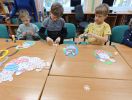 Dzieci wysłuchały opowiadania, wspaniale odpowiadały na postawione pytania, wykazały się znajomością zagadek i świątecznych tradycji. Wykonały również piękne wielkanocne ozdoby, które wzięły ze sobą do domu. Na zakończenie tradycyjny ,,zajączek" poczęstował dzieci słodkościami. Panie, które przygotowały to spotkanie, otrzymały własnoręcznie zrobione przez dzieci upominki.