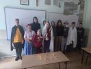 By oddać klimat ludowego obrzędu, uczniowie wcielili się w bohaterów utworu, wykonali stroje i przygotowali dekorację.