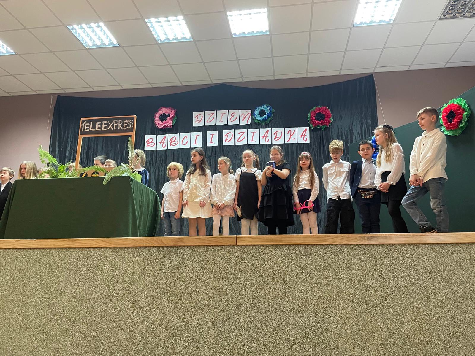 W dniu 28.01 2026 w sali wiejskiej odbyła się uroczystość z okazji Dnia Babci i Dziadka - Dzień Seniora. Uczniowie klas 1-3 przedstawili niebanalny Teleexpress ze specjalnymi informacjami i piosenkami dla naszych kochanych seniorów. Nie zabrakło również wspaniale śpiewającej Dominiki , uczniów grających na saksofonie i wiolonczeli oraz niesamowitego duetu grającego, łączącego pokolenia: Dawida z dziadkiem.