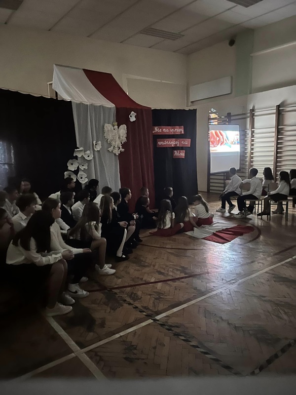 Wzruszająca akademia klas Va i Vb oraz chóru szkolnego, która została przygotowana pod bacznym okiem wychowawców pani Izy, pani Ewy i pana Piotra