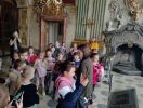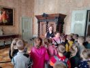 Piękne komnaty zamku zachwycały wytwornym stylem sztuki umeblowania i kolorystyką pomieszczeń...oraz historycznymi obrazami. Dzieci - Uczniowie klas drugich miały wielką radość i podziwiały zamkowe klimaty oraz historię Zamku Książ, w którym mieszkała Rodzina Hochbergów. Usłyszały również opowieść o słynnej - Księżnej Daisy... Było to fascynujące, dzieci poznały również warunki nauki i etykietę - wychowania dzieci w ówczesnych czasach... Nasi uczniowie przenieśli się...prawie...w czasie - i z przejęciem słuchali, jak należało się zachowywać w różnych okolicznościach i na co dzień. Była to wartościowa lekcja historii i duchowa uczta zamkowych klimatów. Byliśmy również w Palmiarni zamkowej, gdzie spędziliśmy czas wśród różnorodnych roślin egzotycznych zachwycających cudnymi kwiatami, były tam również kolorowe pawie, powolne żółwie i lemurki... Dzieci odpoczęły ciesząc oko wśród przyrody, spacerowaliśmy również po Książańskim Parku Krajobrazowym... Było wyjątkowo...![]()
