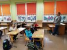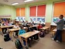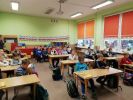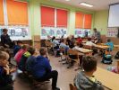 Ubrani na niebiesko i z wielką uwagą klasy 1-3 uczestniczyły w zajęciach poświęconych prawom dziecka z okazji Międzynarodowego Dnia Praw Dziecka. Zajęcia poprowadziła pani Dorota Smereczyńska cała na niebiesko.