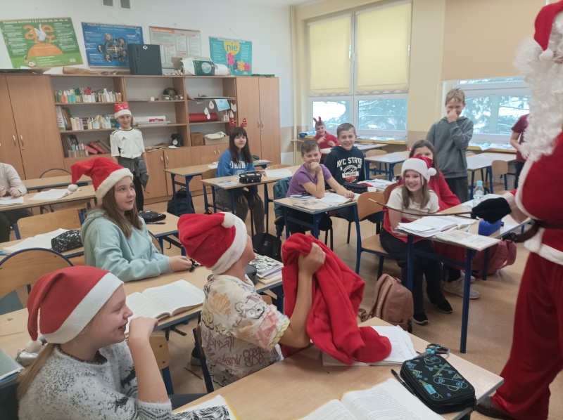 W ten dzień uczniów naszej szkoły odwiedził Mikołaj. Odwiedziny były bardzo udane. Każdy dostał od Mikołaja malutki prezent,