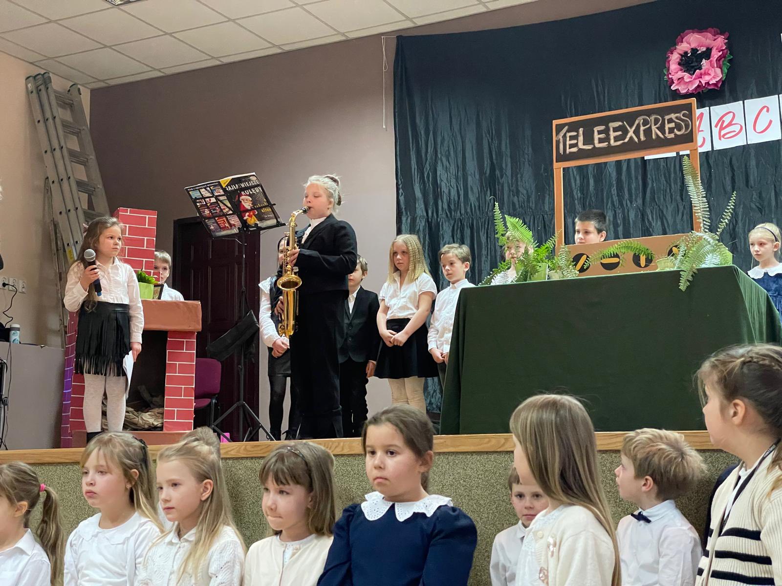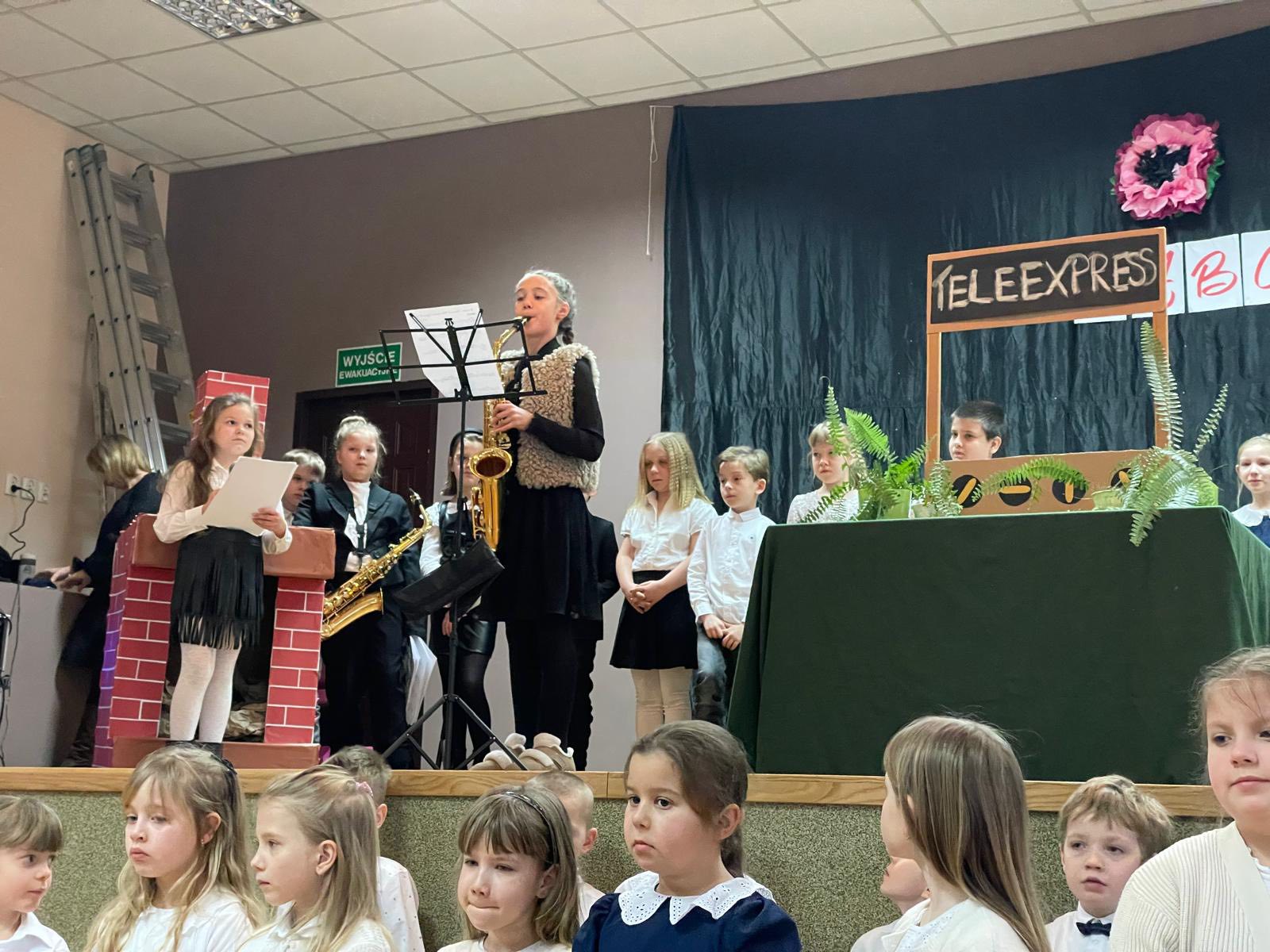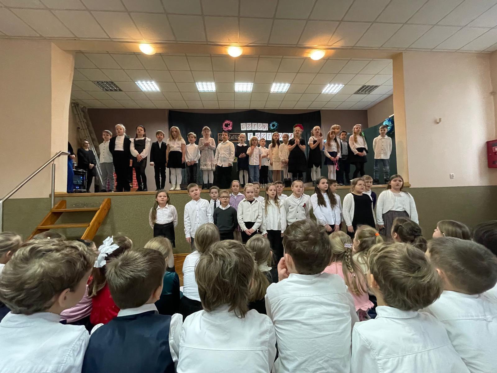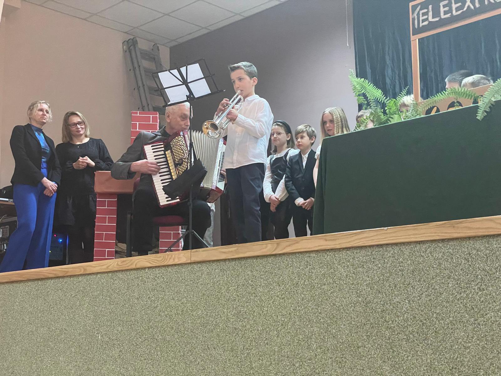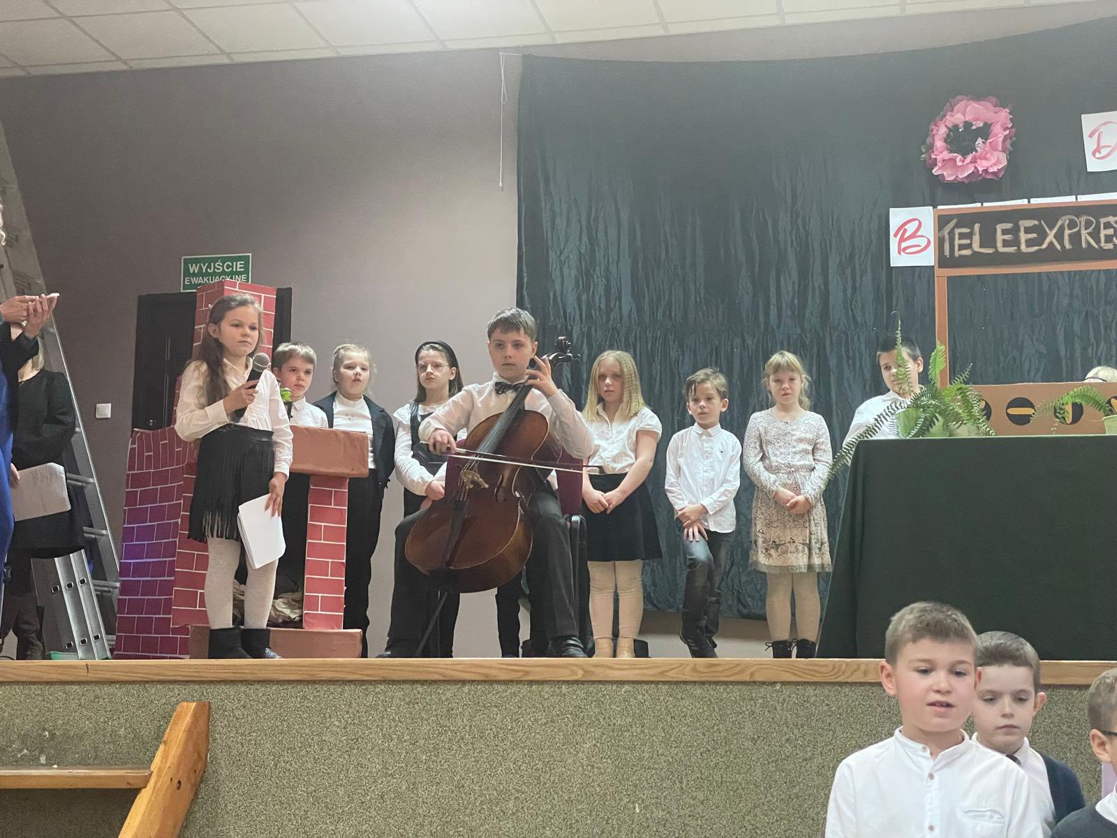 W dniu 28.01 2026 w sali wiejskiej odbyła się uroczystość z okazji Dnia Babci i Dziadka - Dzień Seniora. Uczniowie klas 1-3 przedstawili niebanalny Teleexpress ze specjalnymi informacjami i piosenkami dla naszych kochanych seniorów. Nie zabrakło również wspaniale śpiewającej Dominiki , uczniów grających na saksofonie i wiolonczeli oraz niesamowitego duetu grającego, łączącego pokolenia: Dawida z dziadkiem.